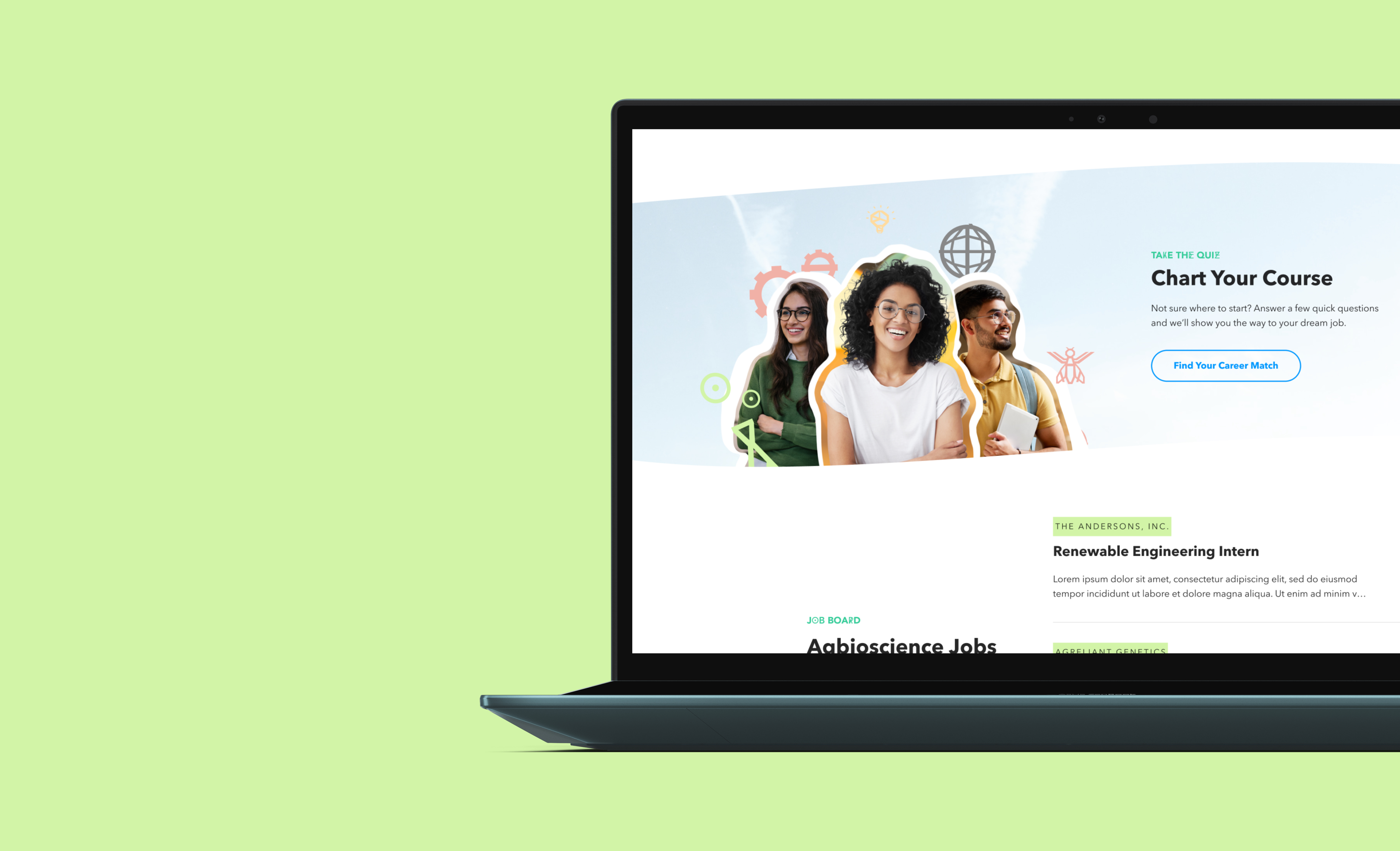 AgriNovus Indiana, a workforce development nonprofit focused on the state’s agbioscience sector, needed to make Field Atlas more accessible, relevant, and engaging for its two primary audiences: students exploring careers and educators guiding them. The existing custom-coded site was difficult to update, lacked a mobile-first navigation, and did not effectively showcase key programs like the Field Atlas Ambassadors. Our challenge was to deliver a refreshed, intuitive experience that encouraged exploration, built personal connections, and supported the organization’s recruitment goals.